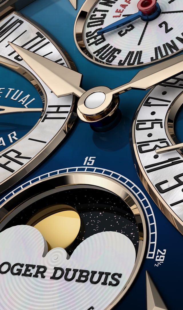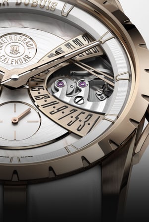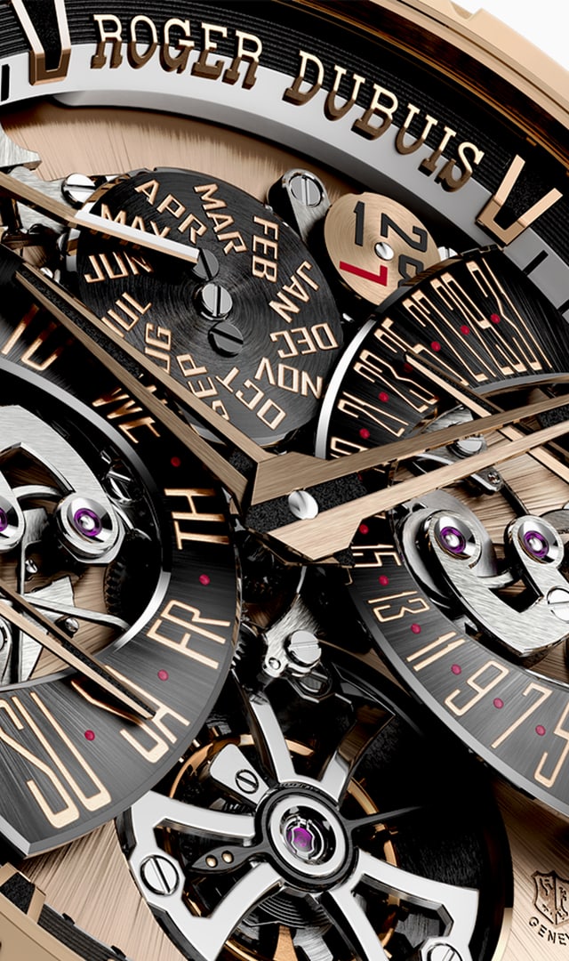 By pairing the retrograde with tourbillons and minute repeaters, the Maison continues to prove that calendar complications never have to be unimaginative. Whether through a single, bi-, or tri-retrograde display, Roger Dubuis harmonizes the rhythm of the stars with the pulse of contemporary life.