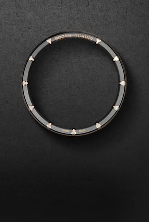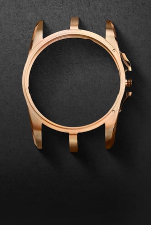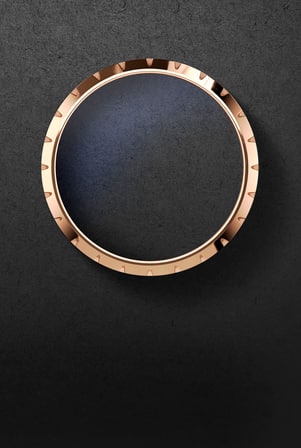 Pink gold* case with sapphire crystal with anti-reflective coating Pink gold* open case back with sapphire crystal Pink gold* bezel with sapphire crystal ring Pink gold* crown *Pink gold 750/1000