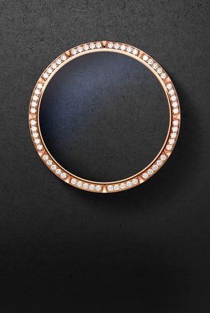 Pink gold case with sapphire crystal with anti-reflective coating Pink gold open case back with sapphire crystal